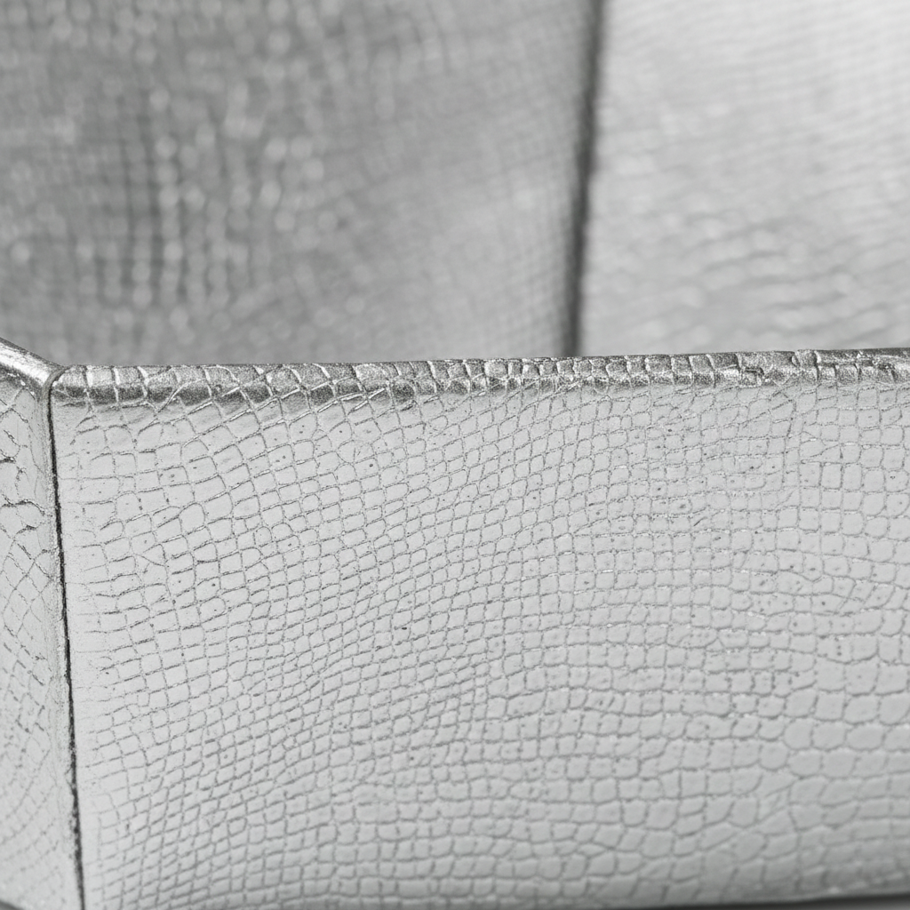 The embossed leather-texture finishes, available in gold or silver, catch the light with a soft, luxurious glow.