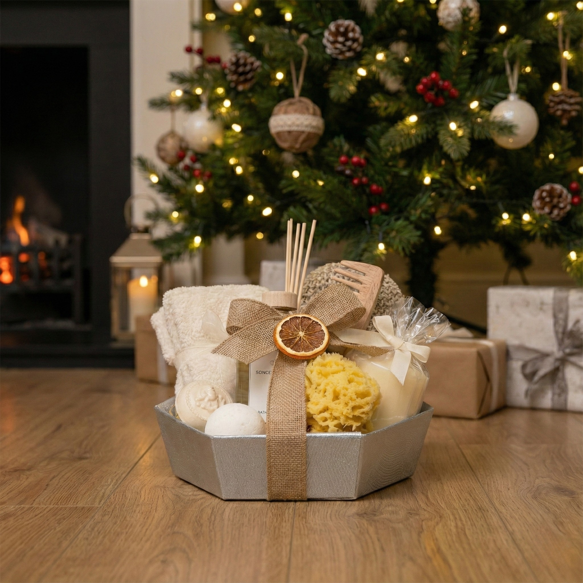 Inspired by the geometric elegance of Palmanova, Italy, the iconic star-fort city, our hexagonal gift baskets bring architectural finesse to modern gifting.