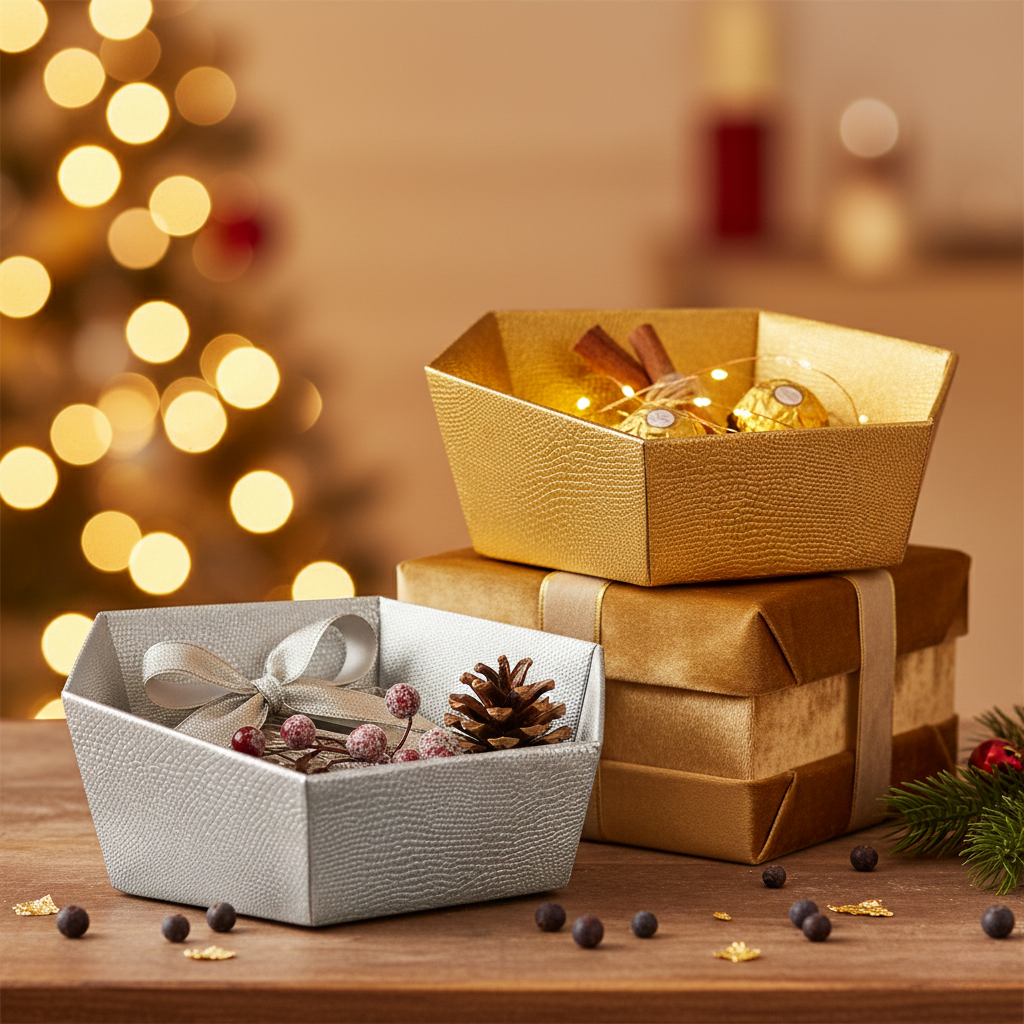 Each pack includes 5 premium hexagonal gift baskets, designed for effortless elegance and memorable presentation. From Christmas treats to year-round celebrations, they’re built to elevate your gifts and to be remembered long after the ribbon’s untied.